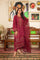 An aesthetically rich design is layered over this graceful raw silk shirt rendered in an elegant jewel tone of red shade. Crafted in a classy silhouette featuring detailed textured threadwork in tribal patterns with sequins in shades of mint and burnt orange, it is paired with matching straight pants and organza dupatta. This design is perfect for a celebratory Eid occasion to create a phenomenal statement.