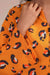 Elevate your style with this contemporary silhouette showcasing an eye-catching animal pattern in deep black hues against a charming mustard backdrop. Pair it with your favorite trousers to achieve the desired look.