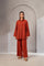 This classy co-ord set features a subtle texture on rust color, a stunning union of sophistication and viberation.