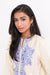 Discover our Off-White Shirt with Intricate Blue Embroidery. The front panel features a unique cut and sew design, and it comes with a comfortable crew neck for a stylish and casual look.