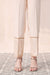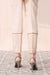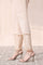 A chic and classy design is portrayed on this gracefully elegant raw silk cigarette trousers rendered in an earthy stone shade. Beautifully adorned with intricate tilla embroidery at the bottom opening, it is further enhanced with lace details.