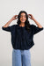 Crew neck top with slit and bow detail at front. Cut & sew detail with gathers at front. Three quarter sleeves with elasticated hem. Cut & sew details with bow detail at back. This eye-catching solid shirt perfectly combines on-trend styling and all-day comfort. Pair with solid joggers for a cool all day look. Available in two colors. FABRIC: 100 % Viscose STYLE ID: XCWTP132005