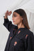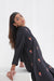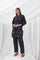 Composed on black yarn-dyed base, this elegant silhouette features shirt and bottoms. Adorned with whimsical floral embroidery in multi-hues, this exquisite design is paired with matching bottoms making it a quintessential understated outfit for your summer gatherings.